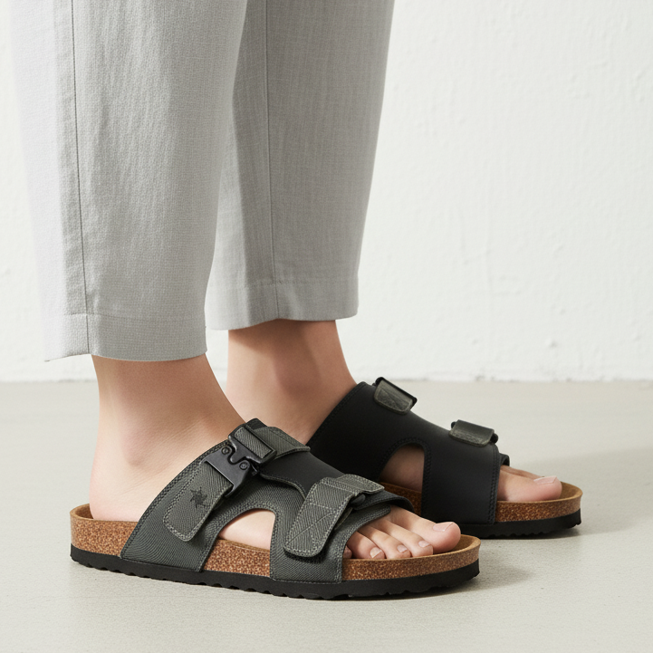 Temukan kenyamanan tak terkalahkan dalam sendal santai ini. Desain bagian atas yang dapat disesuaikan memastikan kenyamanan yang pas. Terbuat dari kulit vegan yang dilapisi busa jersey 3mm, sendal ini memberikan sensasi lembut pada setiap langkah. Sol ringan menjadikannya pilihan sempurna untuk gaya hidup urban yang santai.